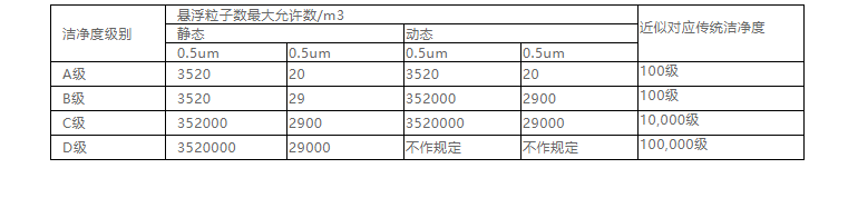 中國(guó)GMP(2010年修訂)新版GMP附錄1 無菌藥品.第三章.第九條……潔凈區(qū)各級(jí)別空氣懸浮粒子的標(biāo)準(zhǔn)規(guī)定如下